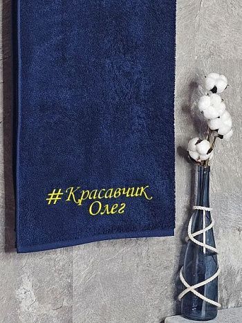 Полотенце с вышивкой 70*140 "красавчик" Олег темно-синее
