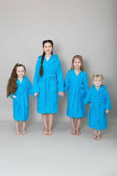 Махровый халат "ЛАПУШКА" с капюшоном из бязи, лазурный, ушки-зайчики