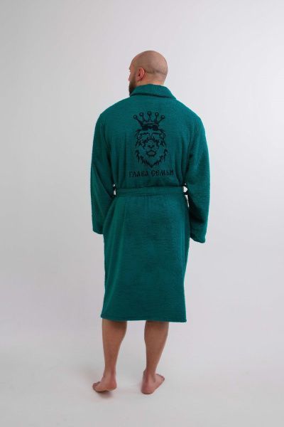 Халат мужской махровый PandaHug с капюшоном, лазурный