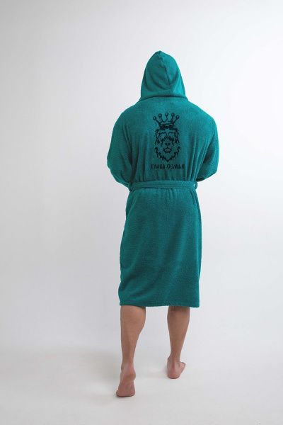 Халат мужской махровый PandaHug с капюшоном, изумруд