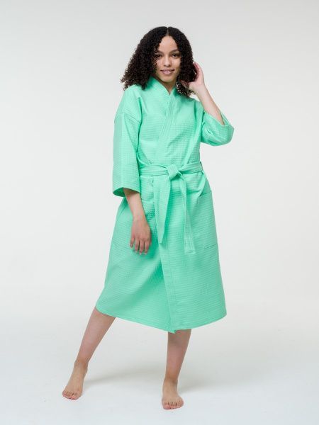 Халат женский вафельный PandaHug Оrnella мятный с капюшоном