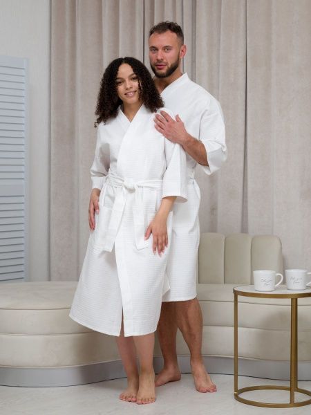 Халат женский вафельный PandaHug Оrnella белый с капюшоном