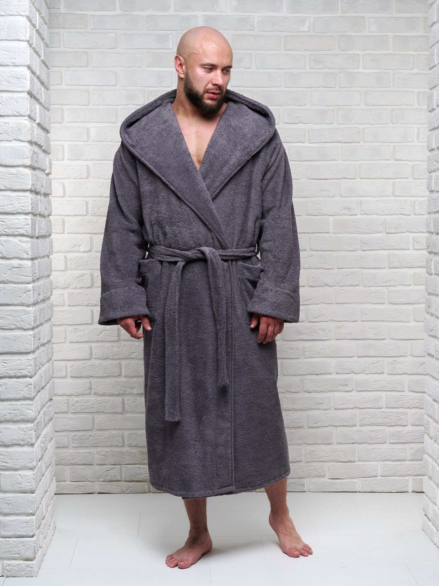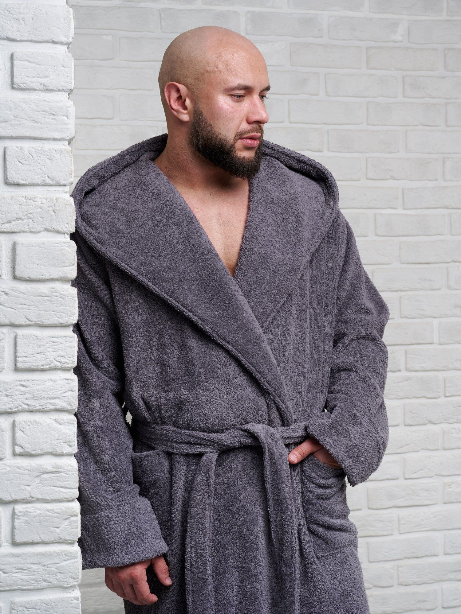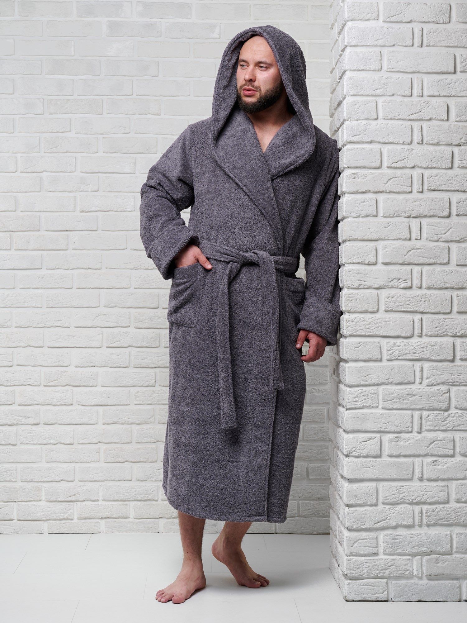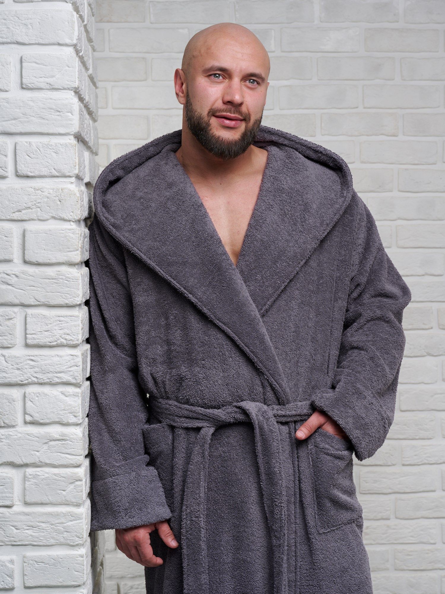 Халат мужской махровый PandaHug с капюшоном, темно-серый