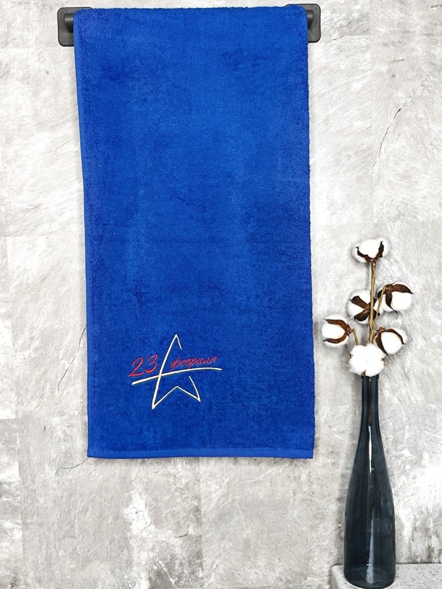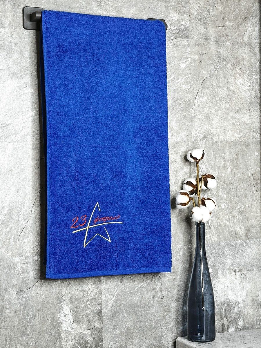Полотенце с вышивкой 70*140 "23 февраля" васильковый