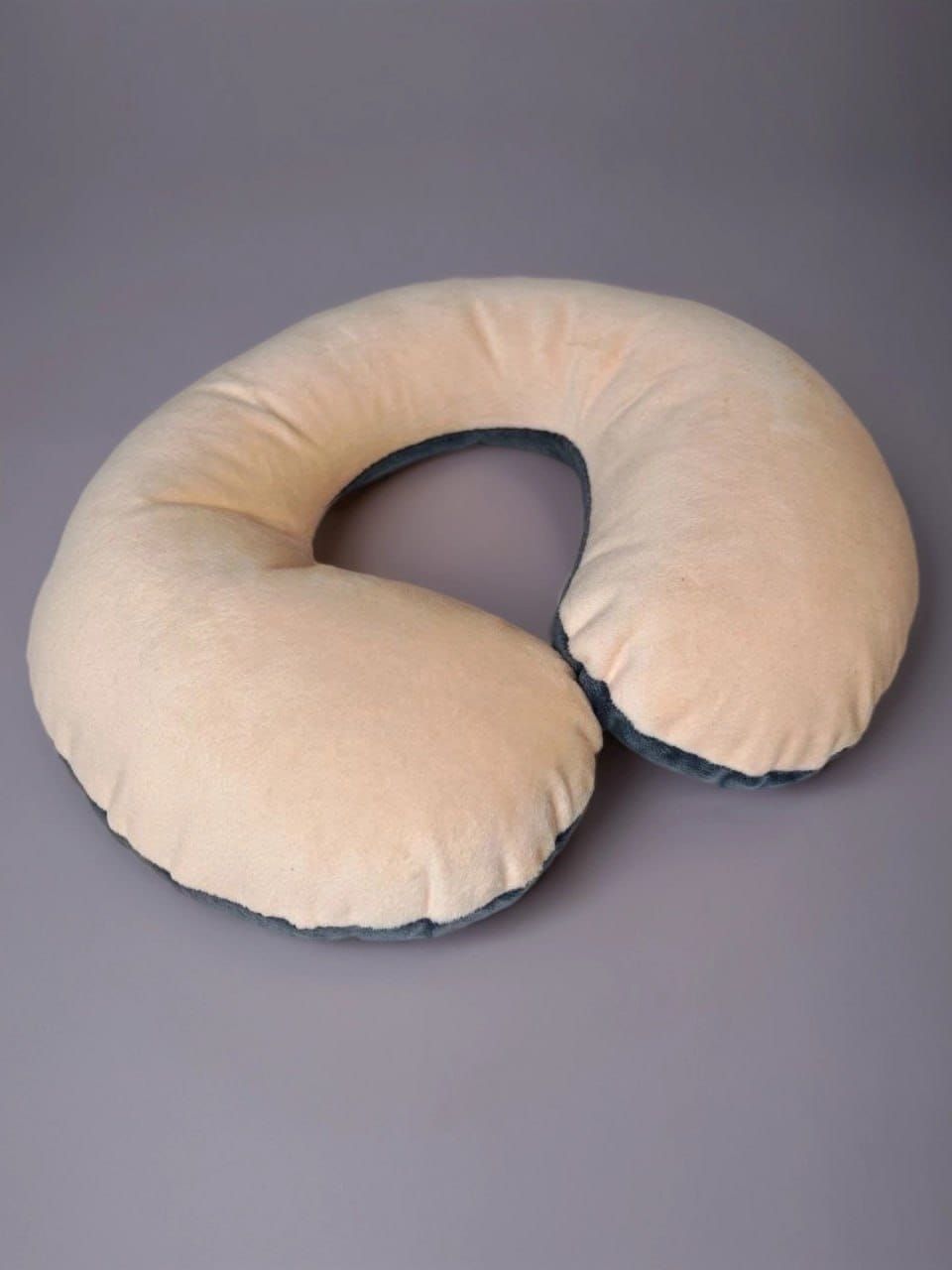 Подушка на шею "рогалик" детская 27*22 персик, т.серый
