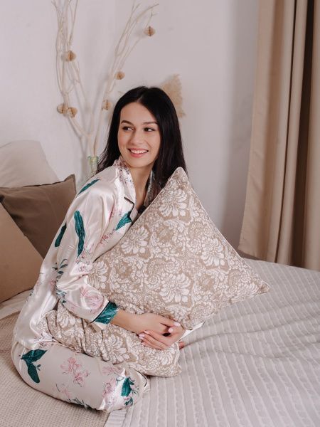 Ткань верха выполнена из 100% хлопка. Благодаря наполнению из искусственного лебяжьего пуха подушка имеет необходимую плотность и упругость для правильной поддержки головы и шеи во время отдыха. Кроме того, материал наполнителя простеган хлопковым волокном, он не содержит токсичных примесей и аллергенов поэтому безопасен.