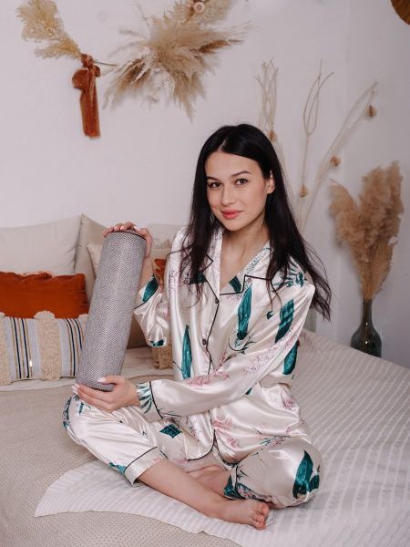 Наполнитель валика – холлофайбер, очень пышный и мягкий материал, абсолютно гипоаллергенный и долговечный, делает валик достаточно удобным и бережным в использовании во время отдыха, при размещении под шею или поясницу.