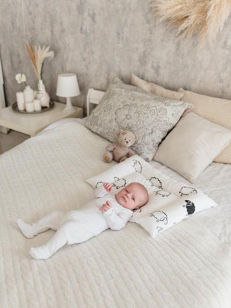 Удобная подушечка создана специально для маленьких детишек. Она легкая и приятная. Валики с трех сторон выполнены для дополнительной поддержки. Боковые «валики» позволяют фиксировать головку на подушечке во время сна или бодрствования, третий валик бережно поддержит шею для правильного развития.