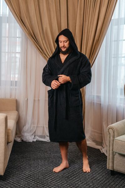 Халат махровый с капюшоном, чёрный