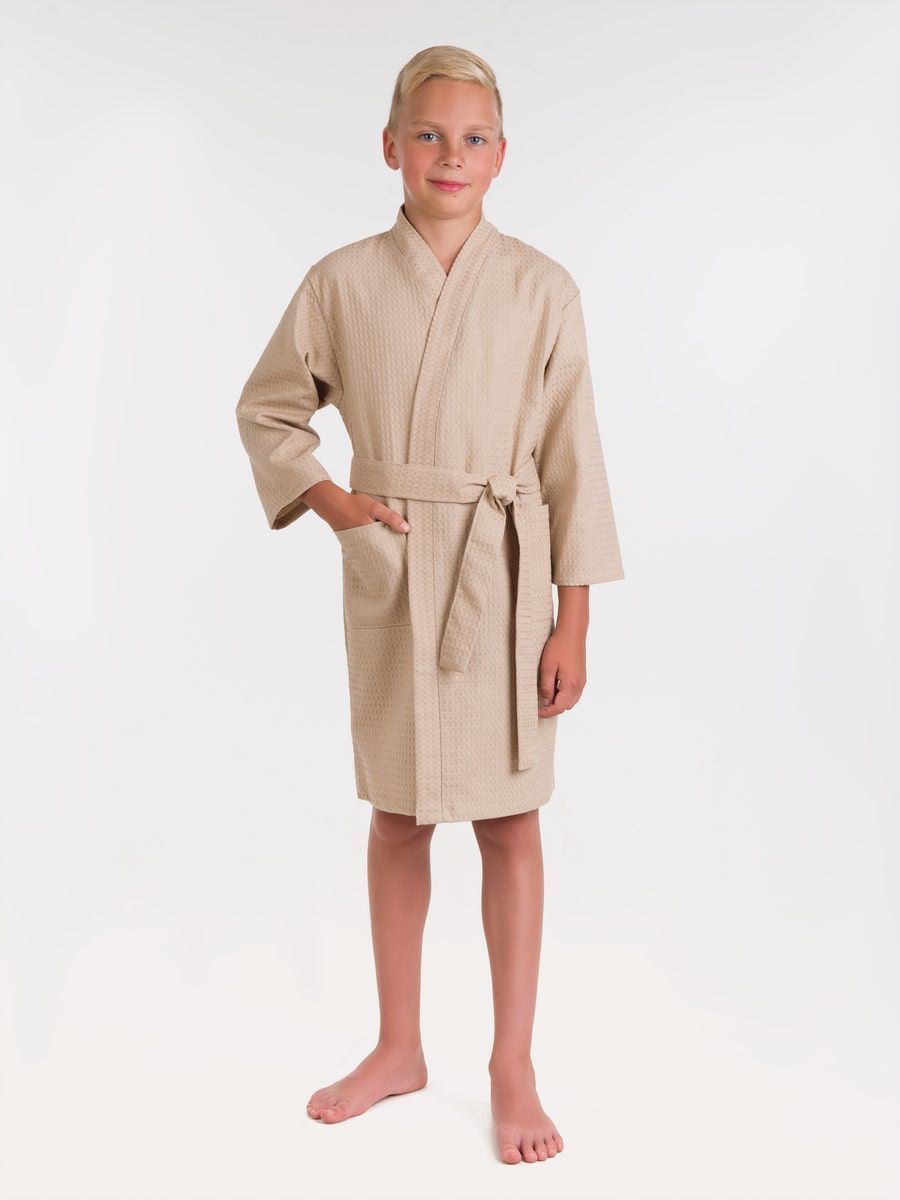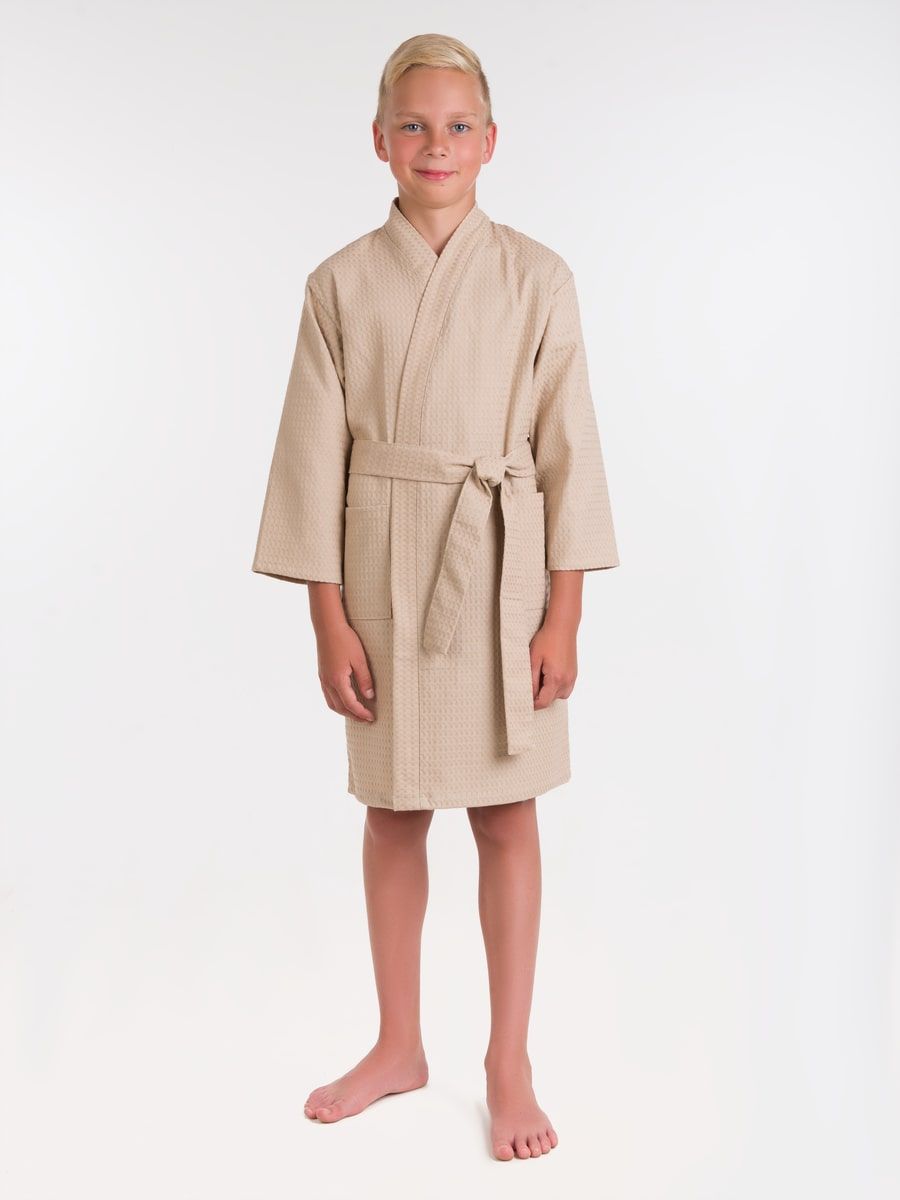 Халат вафельный детский бежевый
