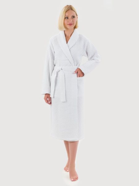 Вафельный халат «Комфорт» в крупную клетку с карманами и пояском. Благодаря высочайшему качеству ткани, халат не растягивается, очень прочен и обеспечивает максимум комфорта.