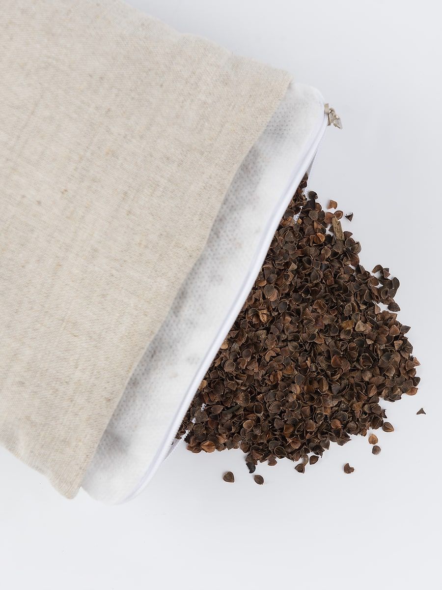 Рассыпчатая гречишная лузга обладает хорошей цепкостью, благодаря чему подушка с легкостью принимает форму тела, поддерживает его и не расползается в стороны. Так реализуется главный ортопедический эффект изделия. Подушка, наполненная лузгой гречихи, не только помогает принять правильную, максимально удобную позу, но и оказывает мягкое массажное воздействие на кожу, улучшая кровообращение. Она способствует снятию напряжения, расслаблению мышц и улучшению качества сна и отдыха.