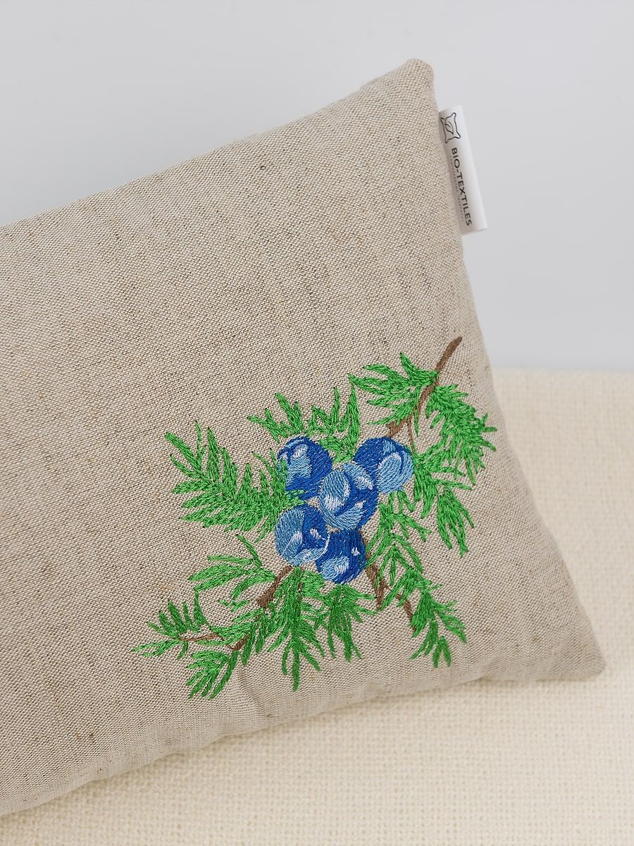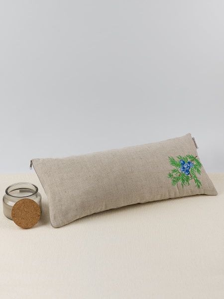 Подушка наполнена натуральной можжевеловой стружкой. Она хорошо держит форму и не слеживается. Свежий хвойный аромат можжевельника обладает целебными свойствами и эффективен для обеззараживания воздуха и предупреждения простудных заболеваний. Кроме того, он помогает быстрее восстановить силы, улучшить настроение, снять стресс и укрепить иммунитет.