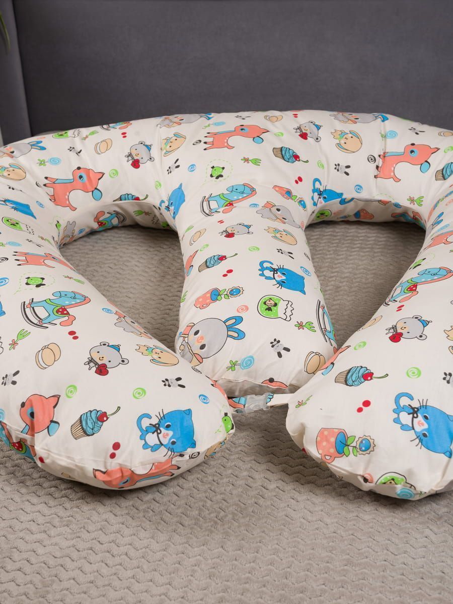 Для кормления грудью подушку можно разместить вокруг талии, приподняв вверх средний валик, который будет поддерживать спину, а боковые снимут нагрузку с рук и плеч. Подушка отлично поддержит малышей, а мамины руки будут свободны для облегчения и удобства процесса кормления.