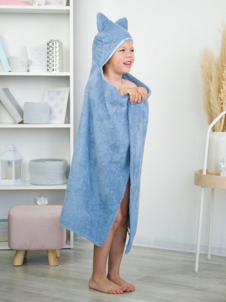 Большое полотенце с ушами кота станет незаменимым аксессуаром после купания как для новорождённых малышей, так и для подросших девочек ростом до 120 см.