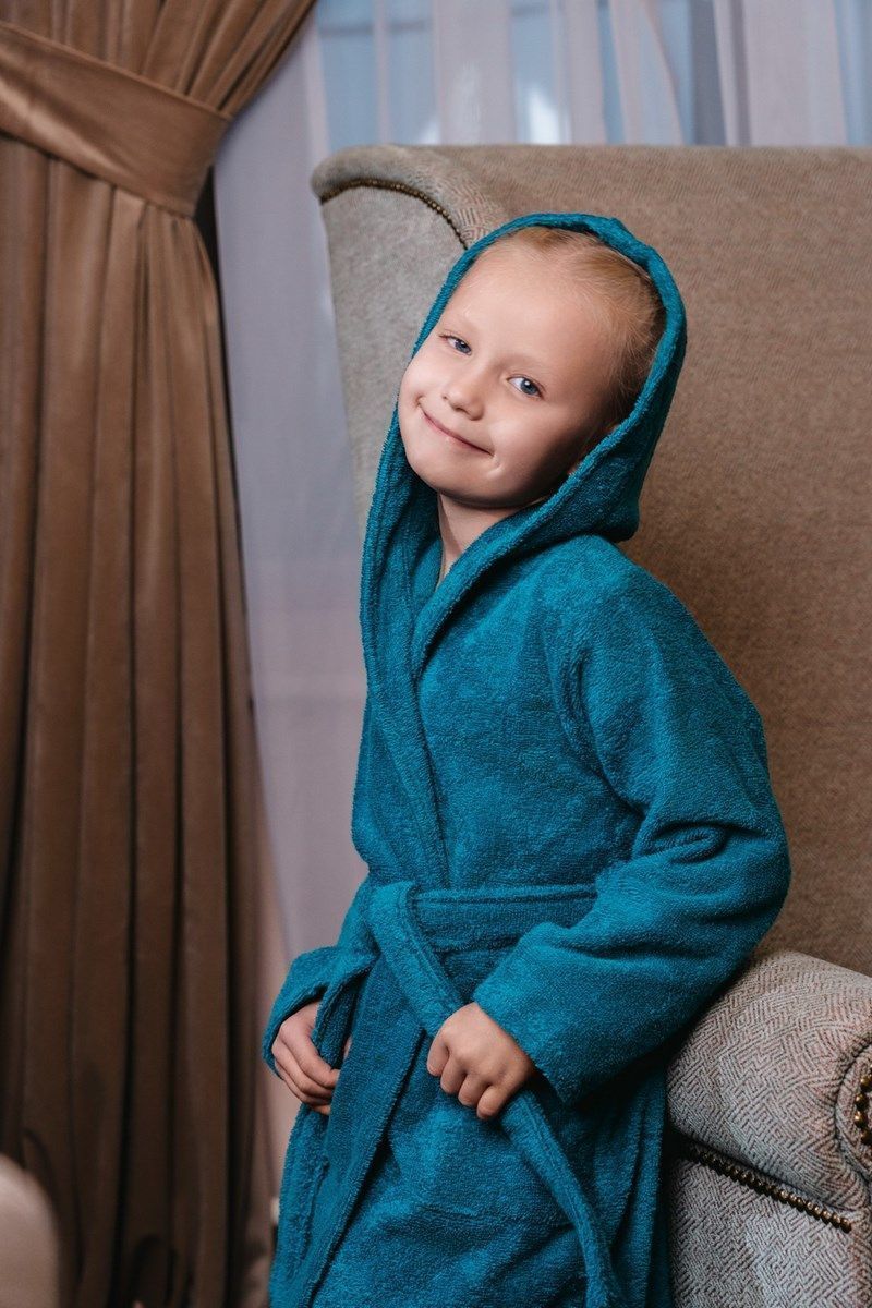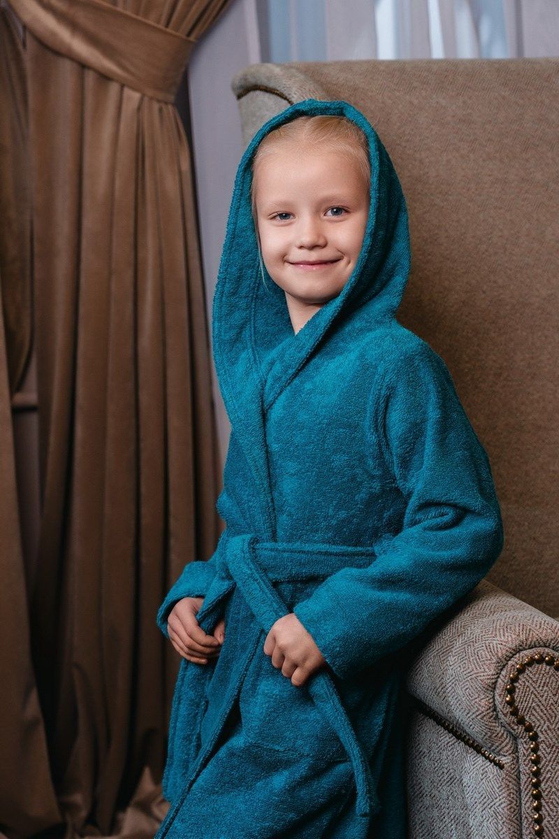 Халат махровый детский с капюшоном морская волна