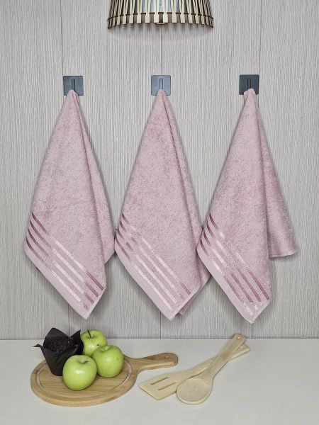 Набор махровых полотенец 3 шт (40*70) розовый, полоса Npol/8887