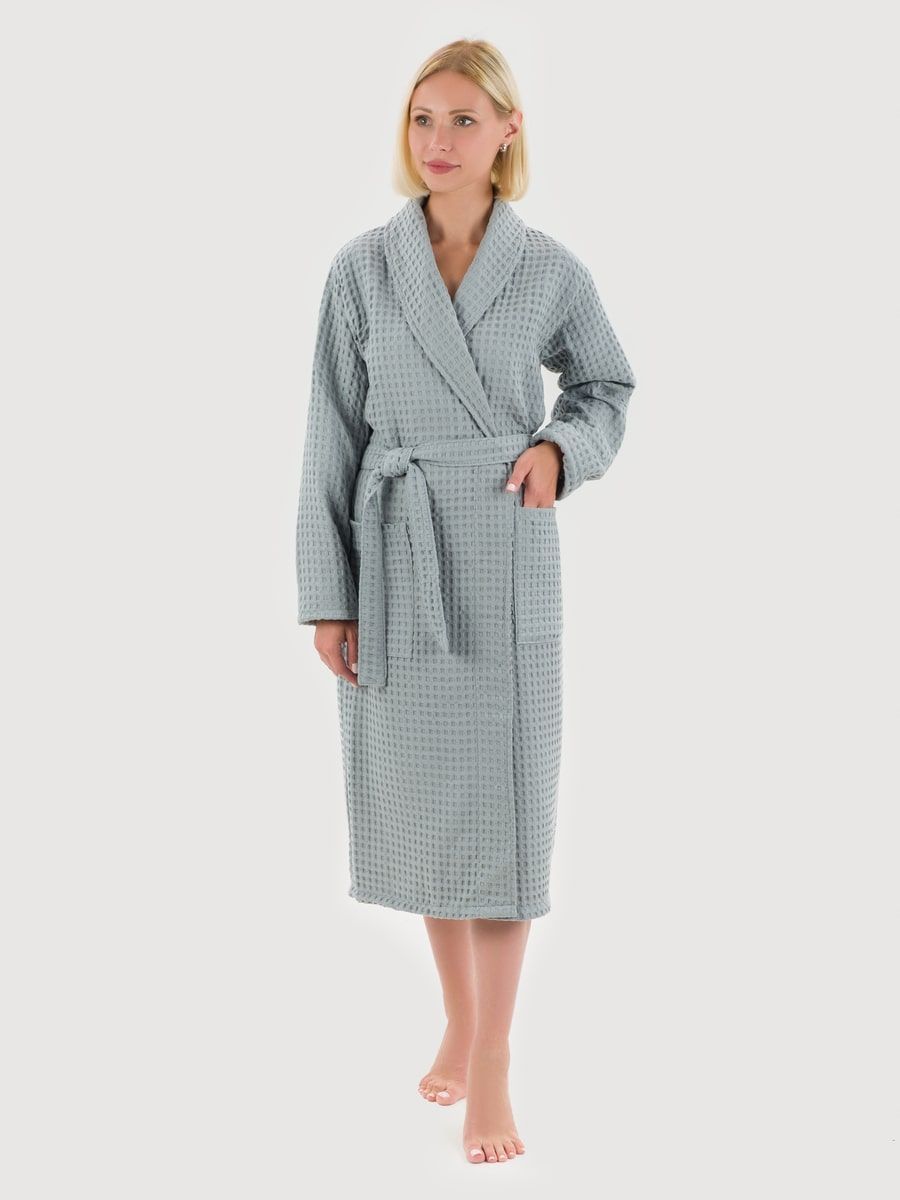 Вафельный банный халат — отличный выбор для любителей комфорта и уюта. Вафельная хлопковая ткань абсорбирует влагу быстрее, чем любой другой материал, поэтому, если вы ищете практичный вариант халата после душа или сауны, то на изделия из вафли точно стоит обратить внимание.